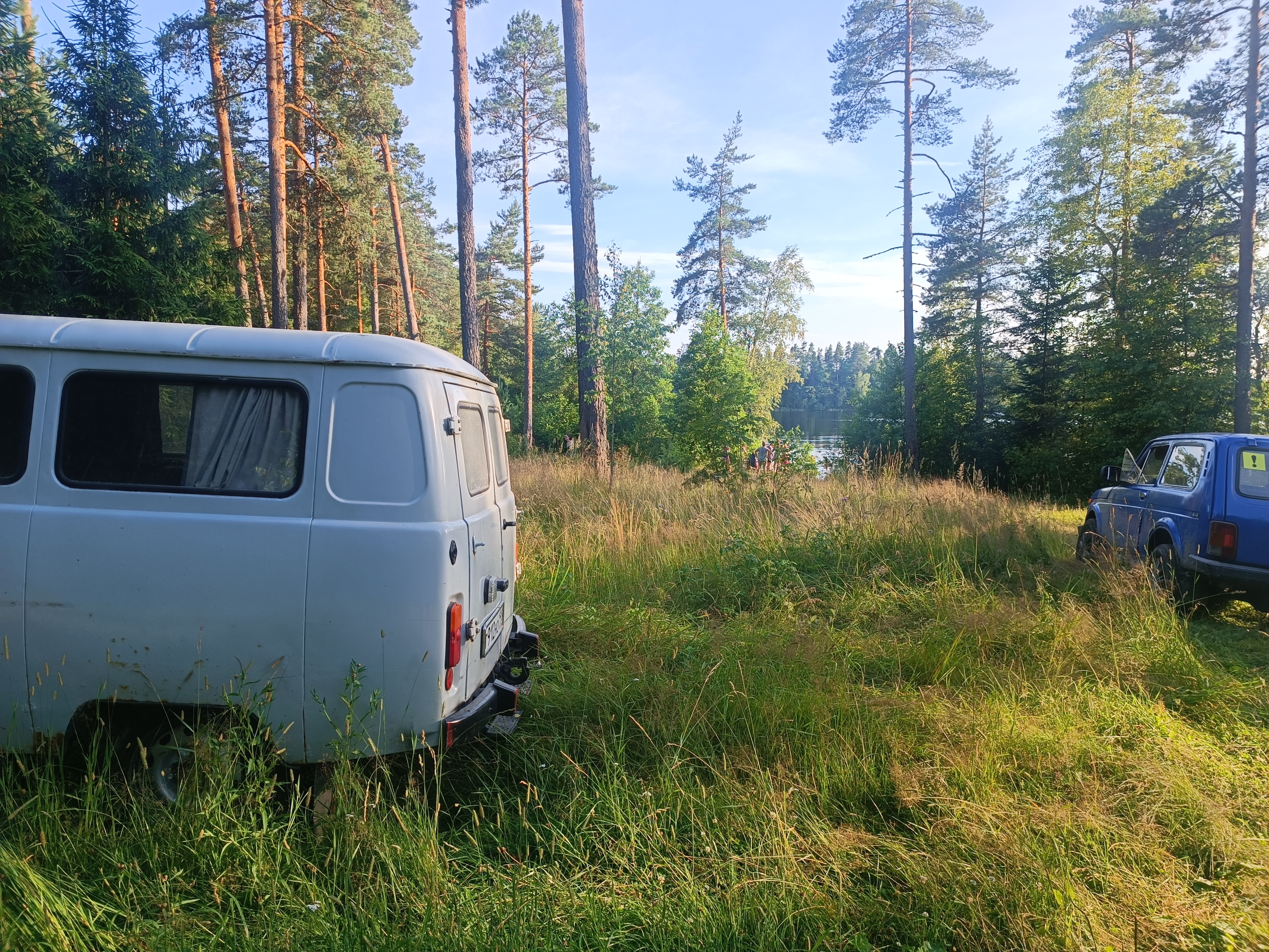 Дорогу на озеро раскатали очень серьезно. Я не знаю как, но 8 лансер в универсале туда как-то прорвался... а так там только для полного привода. И на шниве я бы туда уже не сунулся - там сразу минус задний бампер, как минимум. На минуточку - я умудрился погнуть заднюю подножку на уазе. Но прикольно - все машины на озеро и с озера получаются грязными очень, а у меня только шины в грязи и брызговики. Пассажиры, которых я возил, тоже оценили прелесть такого авто.
