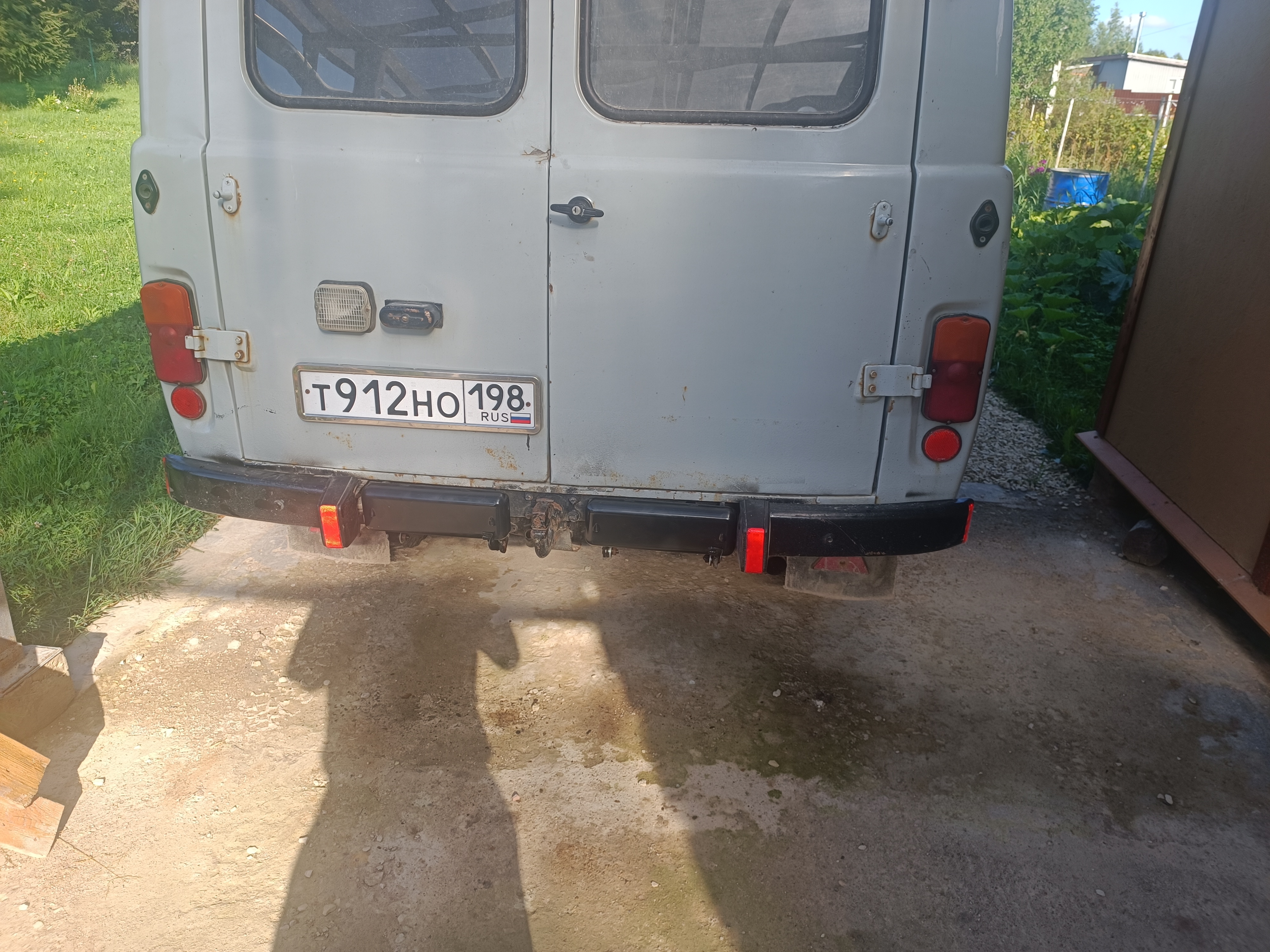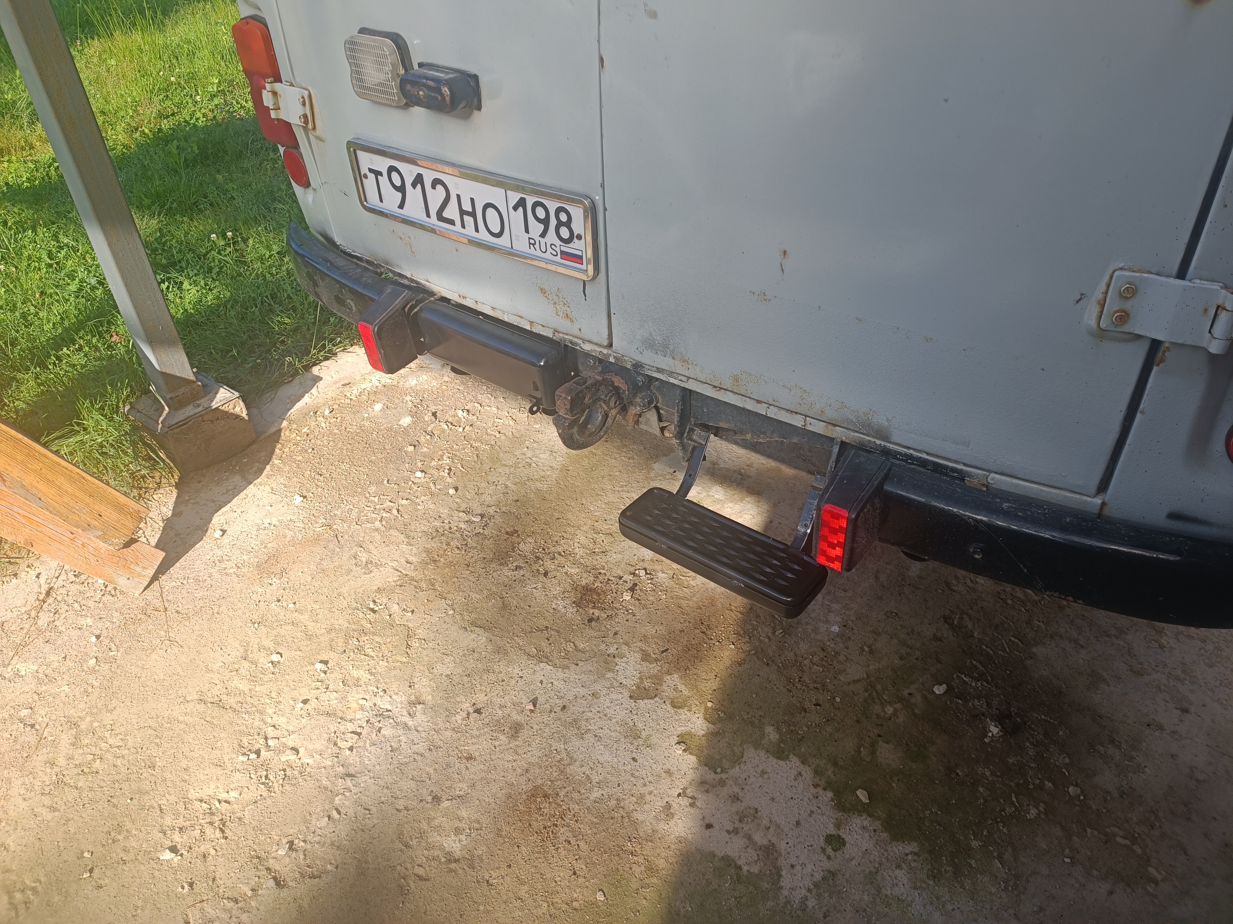 Покрашены они конечно так себе, да и изготовлены тоже на 3+. Но функцию выполняют и вид имеют. Единственное в положении "бампер" одна подножка стоит не под нужным углом к поперечине рамы. Но на это пофиг. С 3 метров не видно и уже хорошо. Это УАЗ. Еще купил розетку на прицеп. Она там должна быть, и место под нее есть на раме. Но пока не ставил - особо незачем и настроения не было.