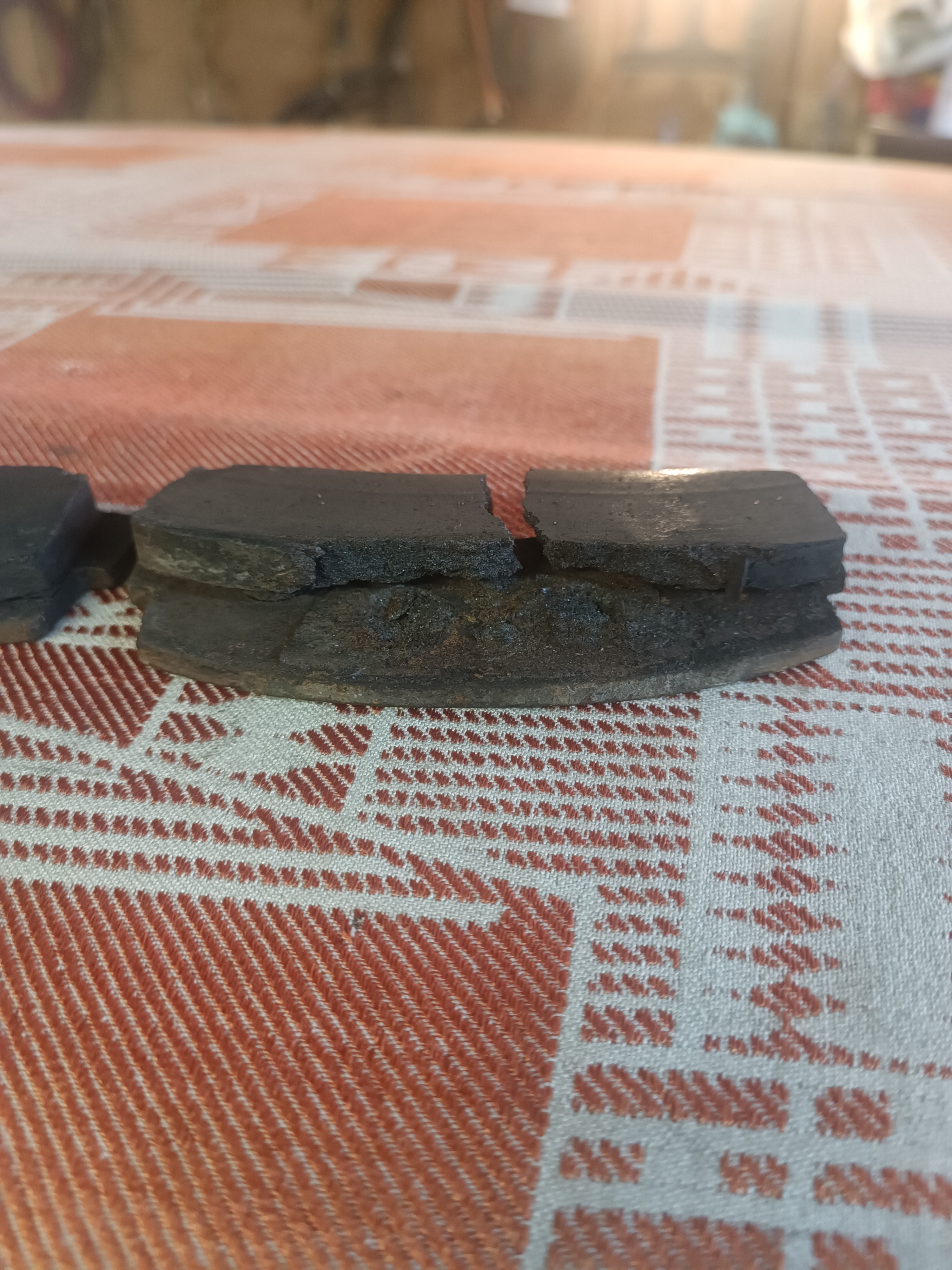 А внутренняя колодка от легкого поддевания отверткой развалилась на куски: