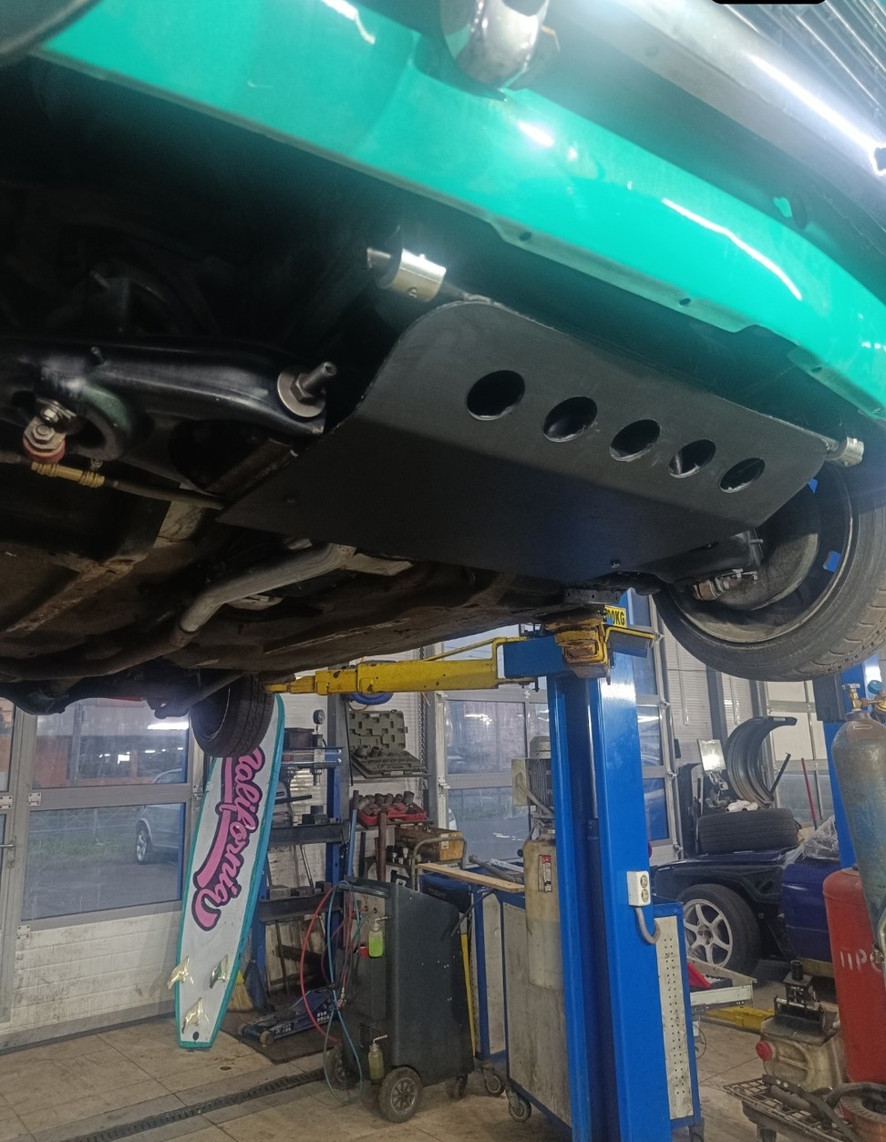 Стенс дело опасное, поэтому была куплена небольшая защита. Спереди крепится она на стабилизатор, который немного укорачивается (фото примера установки). Стаб на пневме выкидывается обычно, так как с ним авто не уронишь. Сзади на штатные крепления былки. Защита рычагов и поддона обеспечена. Фото установки на мой болид чуть позже.