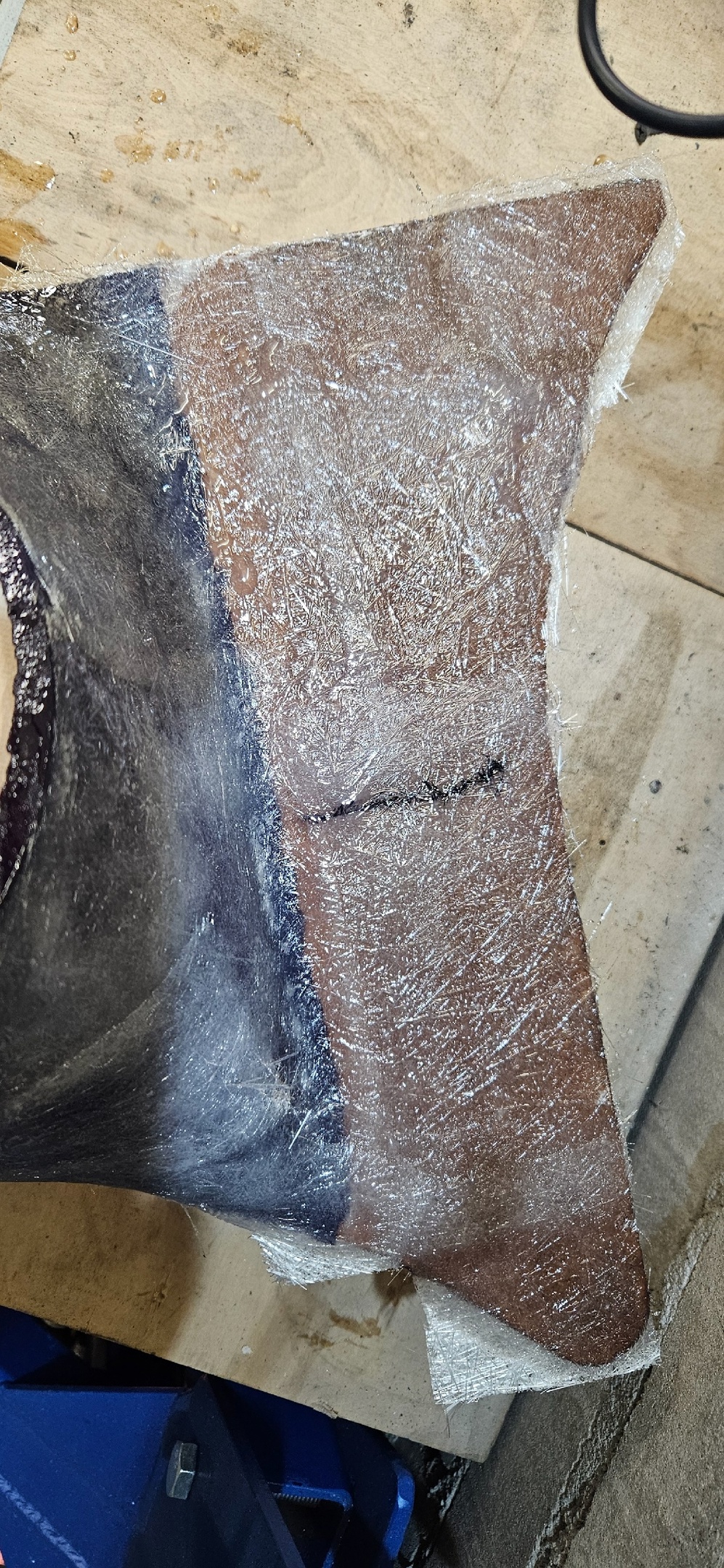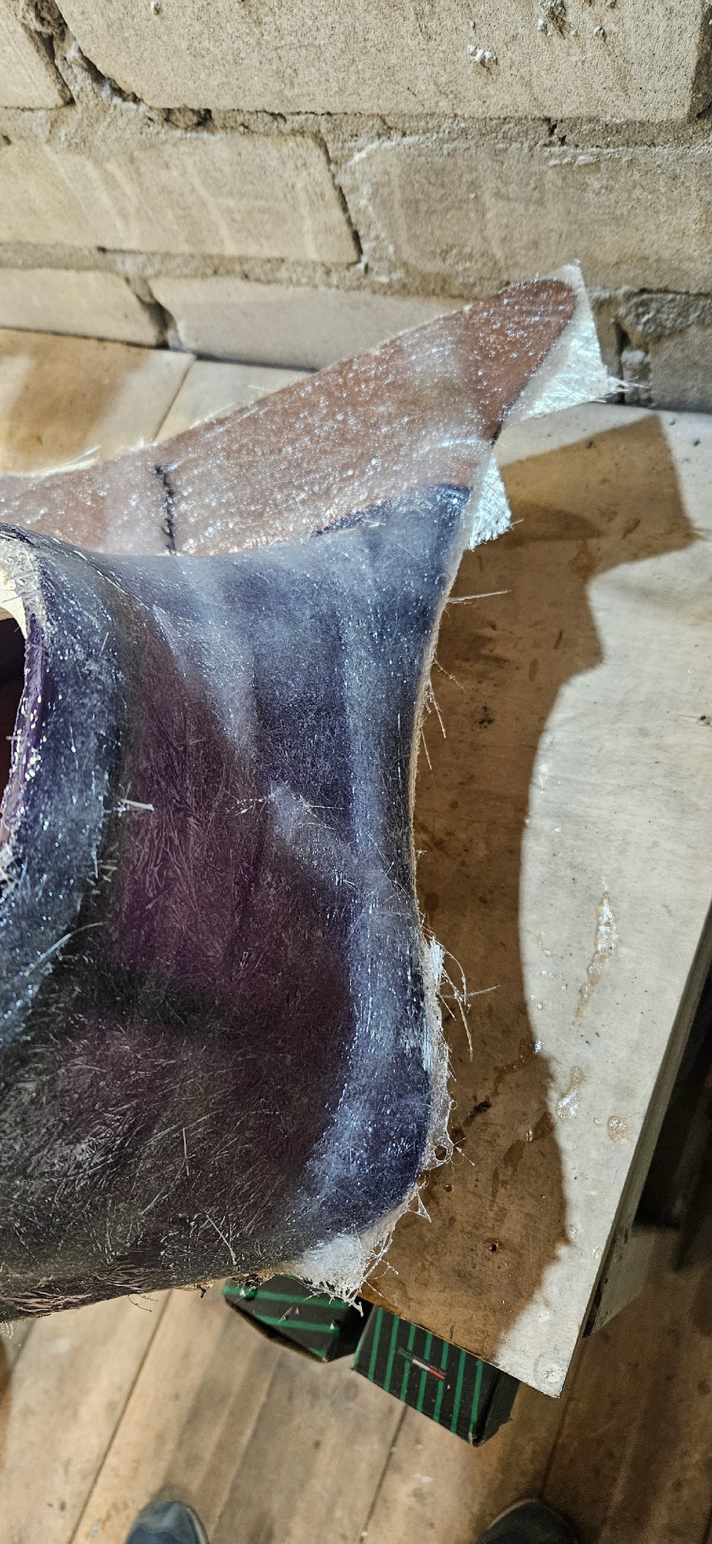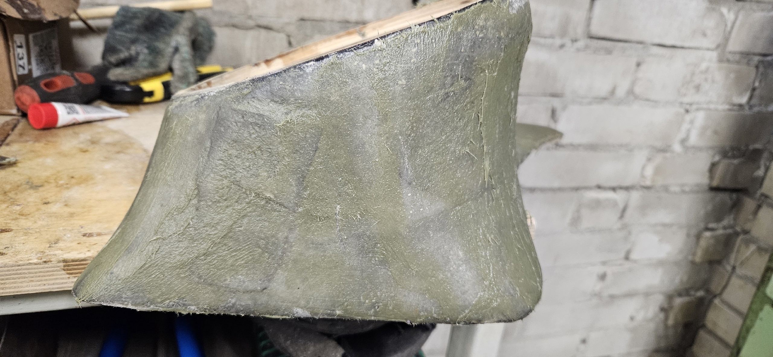 продолжим делать кик панели. После нанесения 4х слоев эпоксидной смолы со стеклотканью немного шлифуем верхность и далее можно подклеить смолой места где есть просадки.