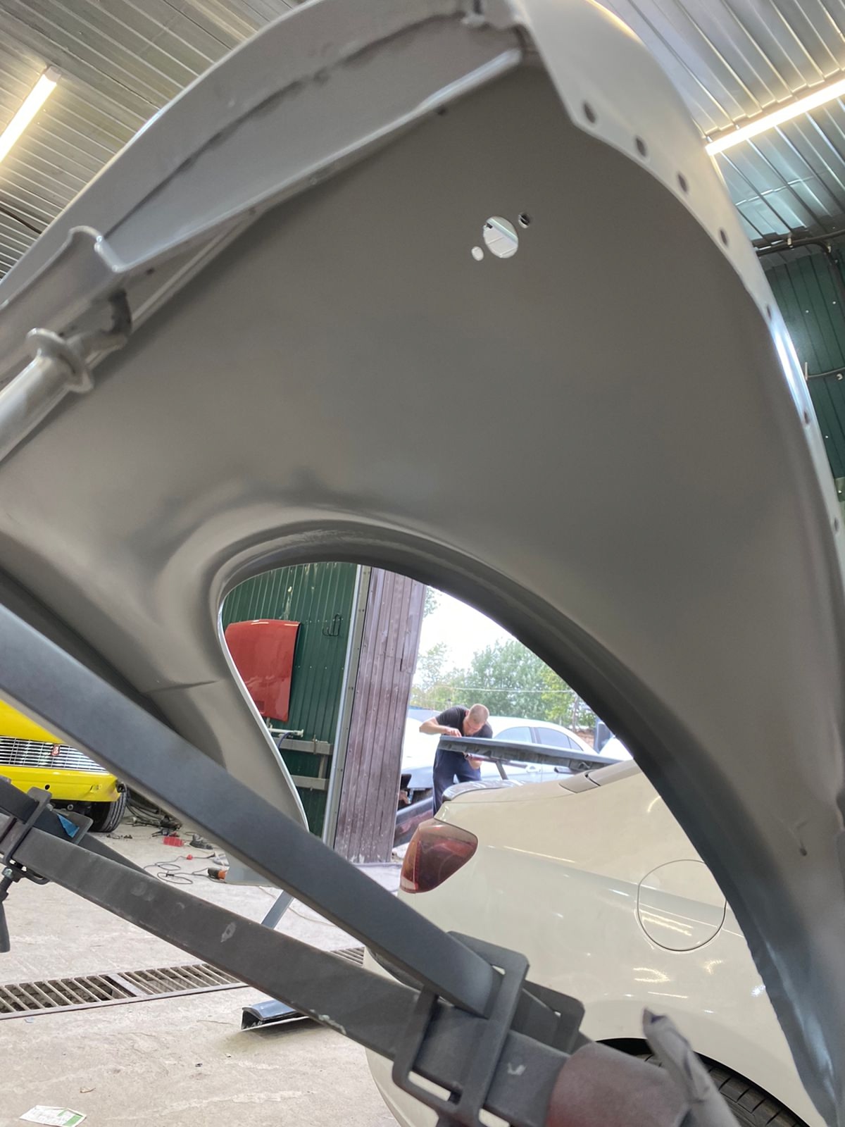Далее покупаем эпоксидную шпаклевку и шпаклюем нашу кик панель, после чего шлифуем шкуркой и так пока не добьем идеальной ровной поверхности и идеальных линий. На фото пример процесса и не окончательно выведены все плоскости.